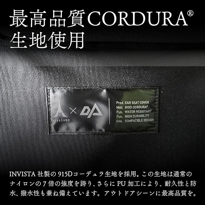 【TokyoCamp OPTION 最高品質CORDURAシリーズ】 耐久性と耐摩耗性: コーデュラ生地は非常に強度が高く、摩擦や引っかき傷に強いです。山道やキャンプ場など、車内が汚れやすく、物を積んだり引っ張ったりするアウトドア環境でもシートをしっかり保護します。