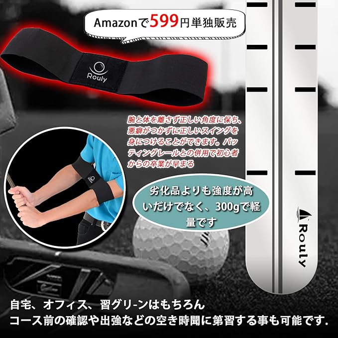 Rouly パッティングレール ゴルフ パター 練習器具 パターレール 【打撃精度を上達する】 パッティング レール パッティング練習 トレーニング フォーム改善 飛距離アップ スイング 矯正ベルト付き | etshop