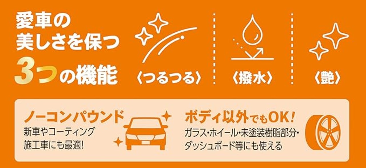 繰り返し使うほど平滑度がアップし、つるピカボディになります。ガラスや車内にも使えます。