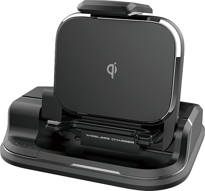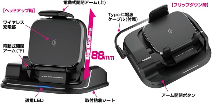 ワイヤレス充電(Qi)対応スマートフォンを置くだけで上下アームが自動でホールド。