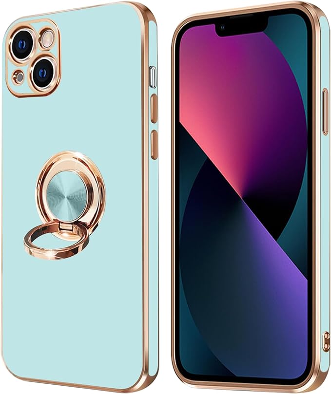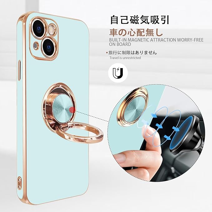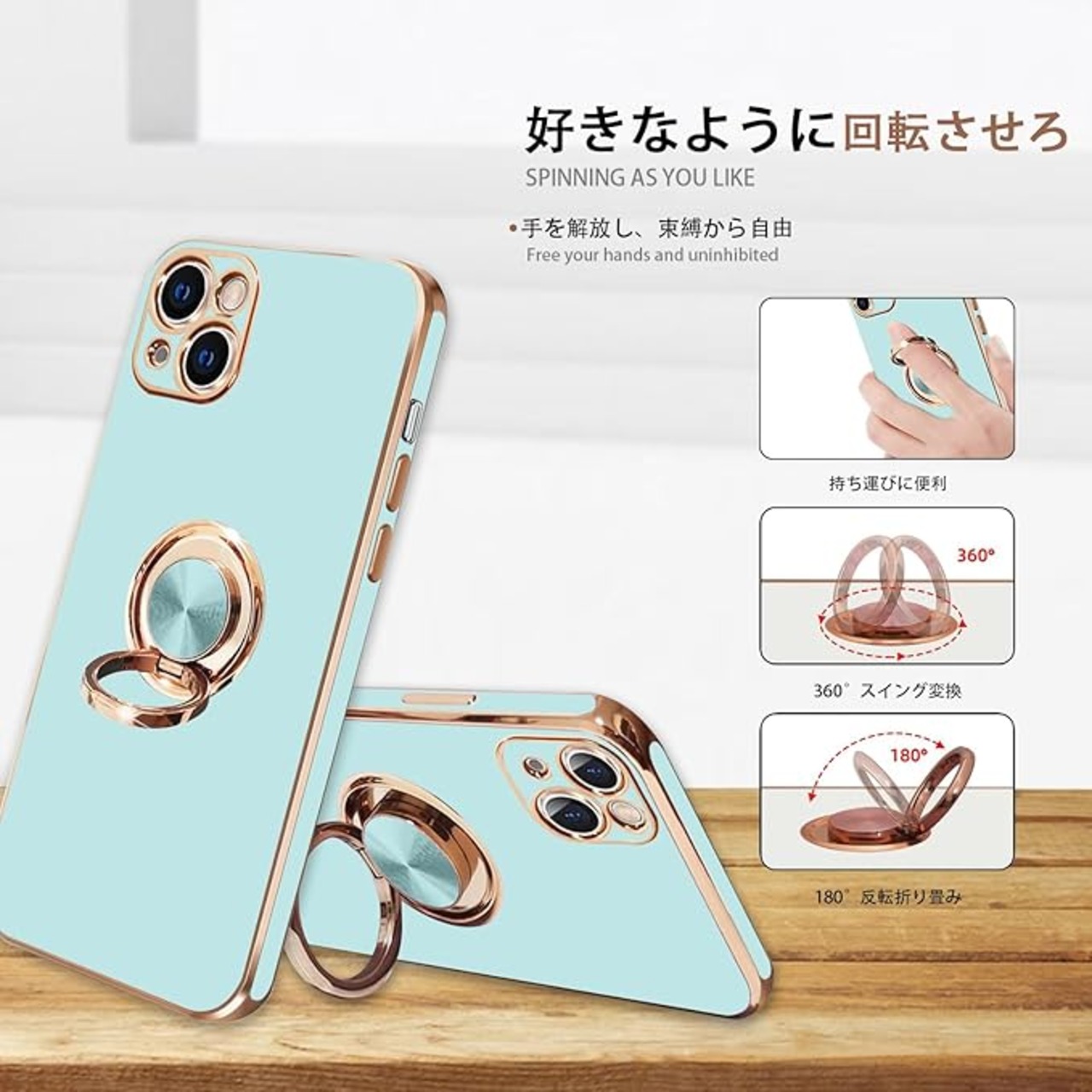 iPhone 13 mini ケース リング付き アイフォン13mini リング カバー 全面保護 スマホケース TPU 耐衝撃 スタンド機能 車載スタンド対応 ストラップホール付き 擦り傷防止 メッキ加工 5.4インチ(イトシアン) | etshop