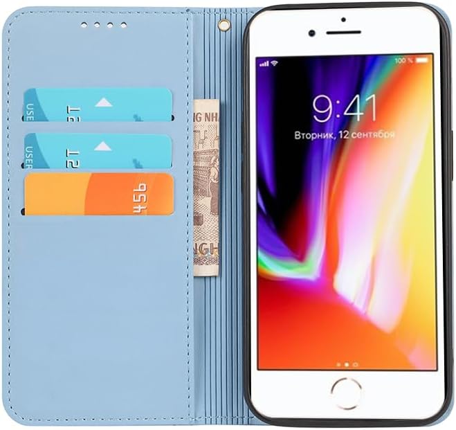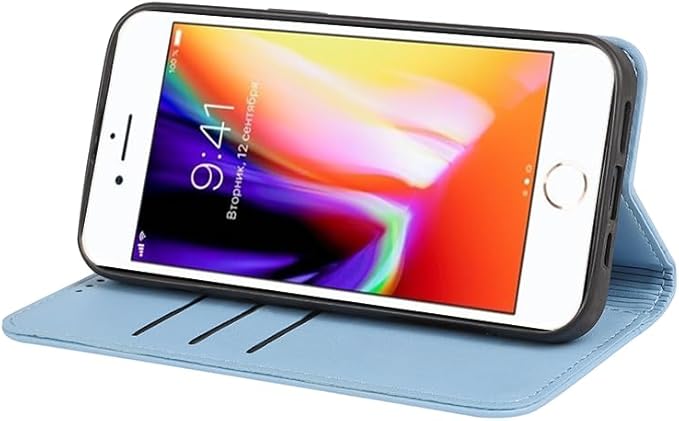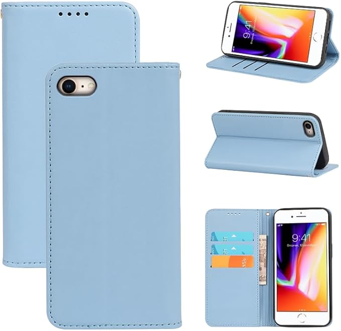 適用 iPhone SE (第2世代/第3世代) ケース 手帳型 (4.7インチ対応) iphone8 用 iphone7 用 手帳型 ケース カバー PUレザー カード収納 財布型 耐衝撃 ケース マグネット スタンド機能付き 5色 (適用 iPhone 7/8/SE2(2020)/SE3(2022)ケース 手帳型) (ライトブルー) | etshop