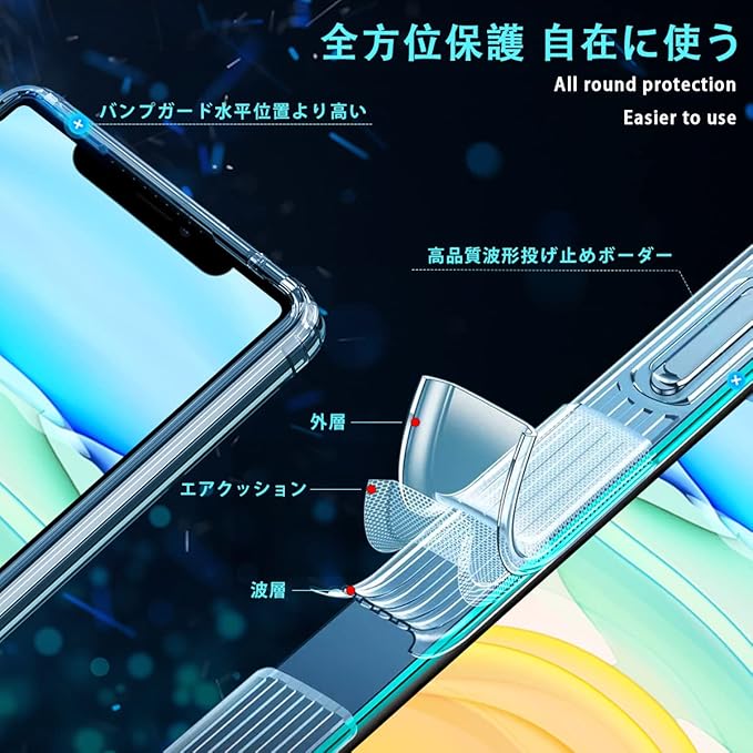 【細部までも全方位保護】アイフォン本体の曲線に従って、液晶画面やカメラレンズより高めに設計、外部からの擦り傷を避けます。また、ケース側面はフルエアクッション搭載、落下時の衝撃を最大限に分散・吸収でき、全方位からアイフォン をしっかりと守れます。