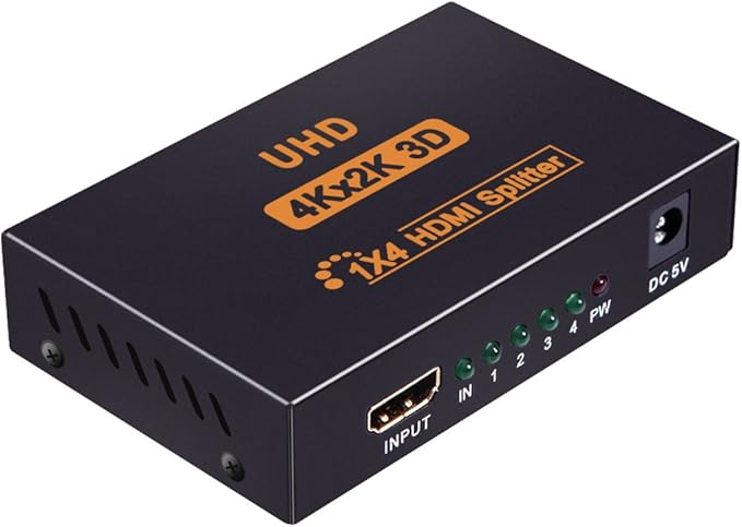 【1入力4出力】本HDMIスプリッターは2台のhdmi出力機器に同時に出力できます。1つのHDMI入力信号を同時に劣化なく二つのHDMI 信号に分けて出力することが可能です。