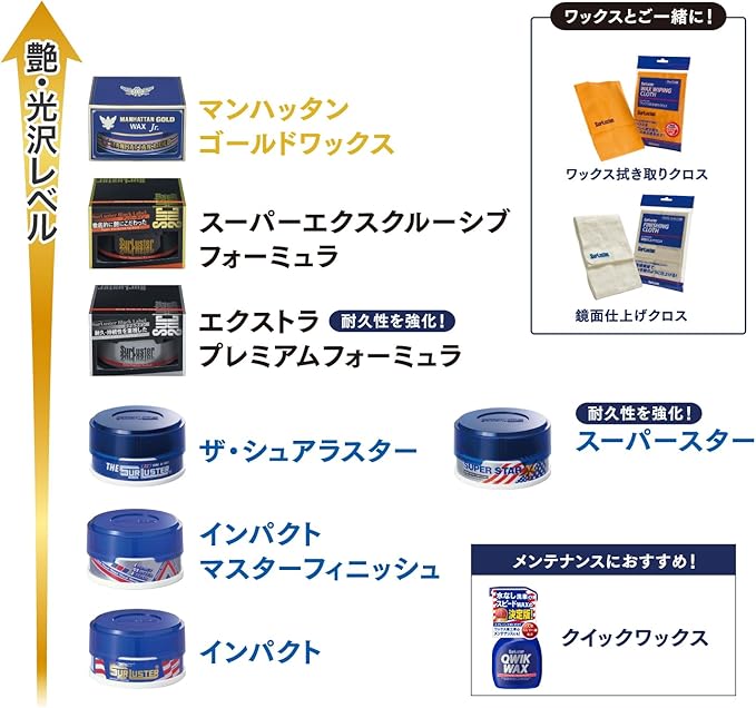 SurLuster(シュアラスター) マンハッタンゴールド ワックス ジュニア 100g 固形ワックス カーワックス 天然カルナバ蝋 艶 スポンジ付き ツヤ 光沢 保護 自動車 全塗装色 M-03 | etshop