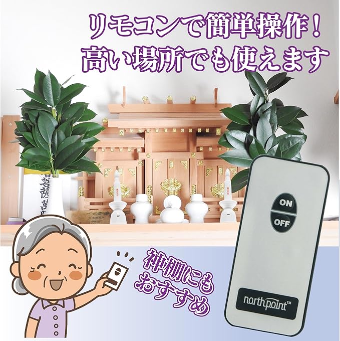高い位置の神棚に設置しても楽に操作可能なリモコンタイプ♪シンプルなリモコンでどなたでも簡単に操作できます