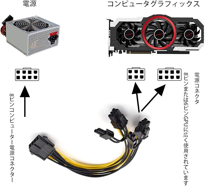 【対応グラフィックカード】ASUS、Gigabyte、Radeon、Sapphireなど流行っている製造元の8ピンPCIe電源コネクタを搭載したグラフィックカードに対応します。コンピュータ電源のアップグレードデュアルビデオカードシステムとの互換性。