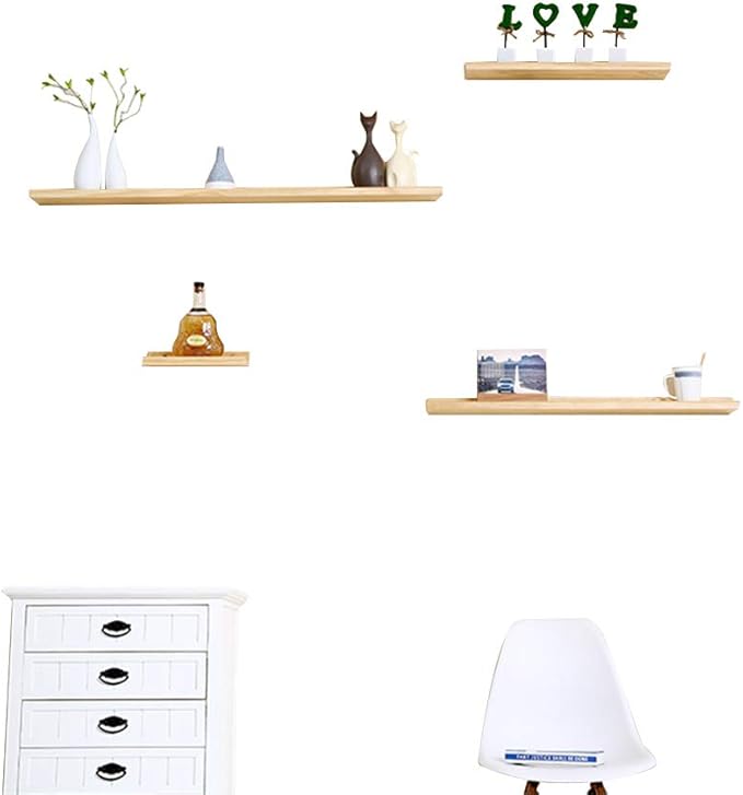 YOYAI 木色M 壁掛け棚 飾棚 壁付け棚 ウォールシェルフ 壁収納 一文字式 松木使用 (ナチュラル60cm1本)