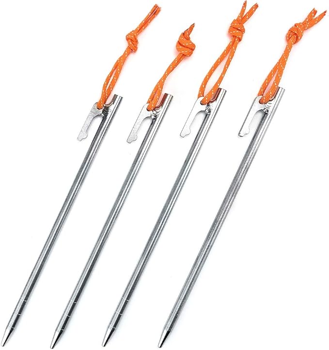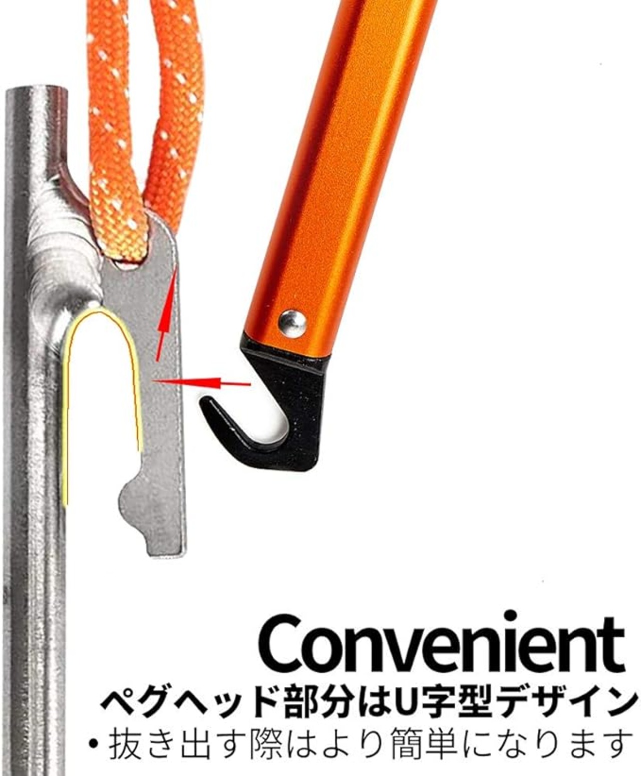 打ちやすいデザイン:強く堅実に地面へ打ち込めるのは、円柱形のヘッド形状だからこそ。ハンマーで叩く際に滑りにくいので、打撃力を確実にボディに伝えます。(ご了承ください:3本と4本セットには収納バッグを付いておりません)