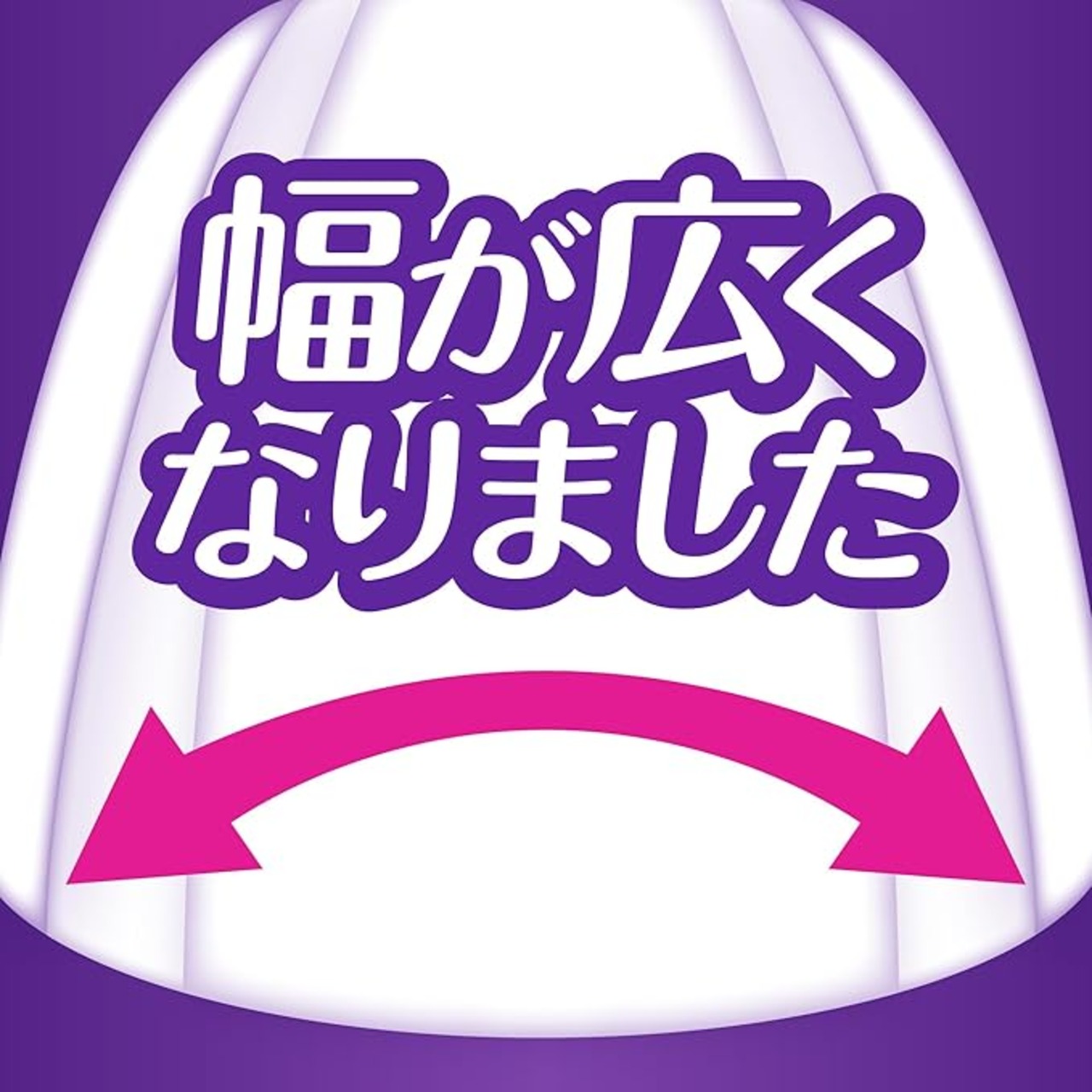 吸収エリア幅広設計*当社従来品比較。ぴったりフィット 横モレ防止デザイン。