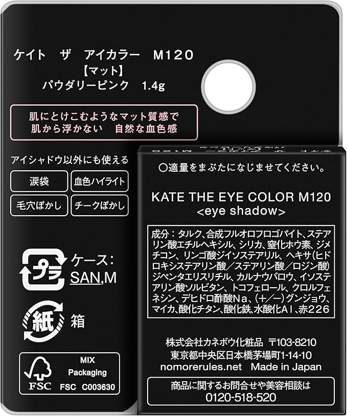 肌にとけこむようなマット質感で 肌から浮かない自然な透明感・血色感 マルチに使えるシングルアイシャドウ ■涙袋・くすみ飛ばし・血色ハイライト・毛穴ぼかし・チークぼかしに アイシャドウ以外にも使える ■自然な透明感・血色感偽造 プランプカラー M120【パウダリーピンク】