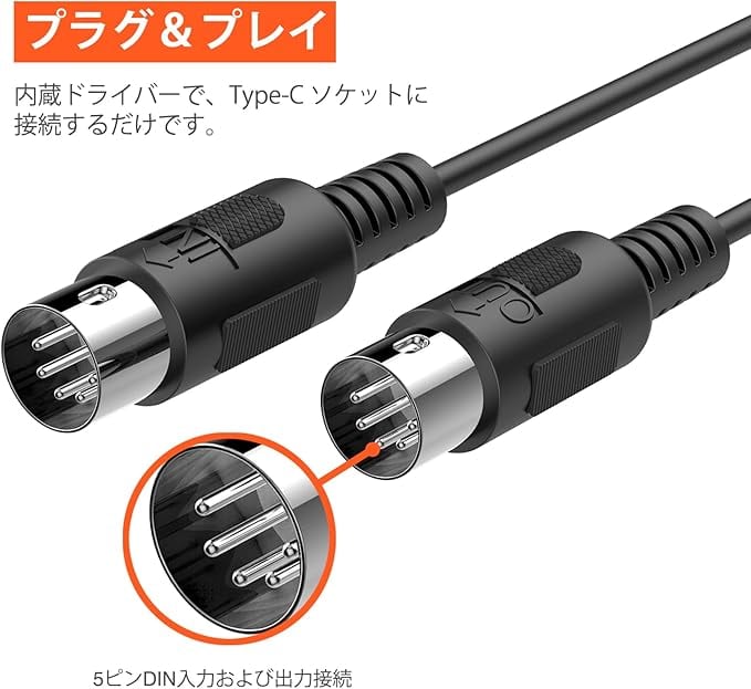 プラグアンドプレイ:USB Type-C MIDIケーブルを使用すると、MIDIデバイスに直接接続できます。特別なドライバーは必要ありません。プラグアンドプレイでWindowsや楽器を使用できます。Win7、Win 8、Win10などと互換性があります。