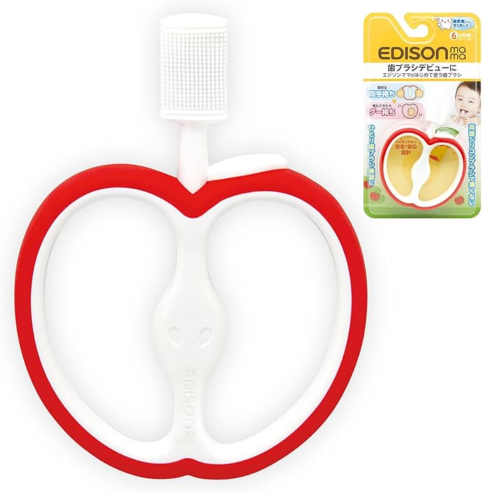 EDISONmama(エジソンママ) はじめて使う歯ブラシ リンゴ 6カ月から スキンケア&バス用品 ヘアケア用品 歯ブラシに慣れる練習 裏表ともブラシ状 バナナモチーフ 両面ブラシ 喉突き防止形状 ラバーグリップ | etshop