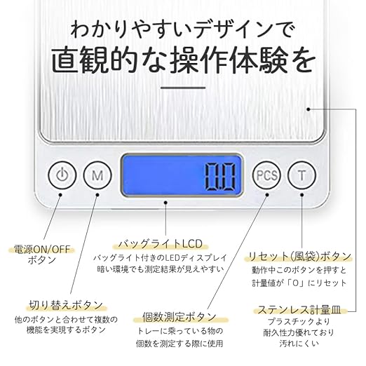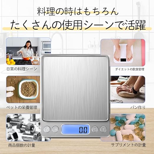 キッチンスケール はかり デジタル デジタルスケール スケール 電子秤 はかり 3000g 計量器 0.1g単位 3kg キッチン クッキングスケール 測り 料理 調理 お菓子作りレタースケール コンパクト 風袋引き オートオフ 電源自動OFF トレー2個付き 日本語取扱説明書付き シルバー | etshop