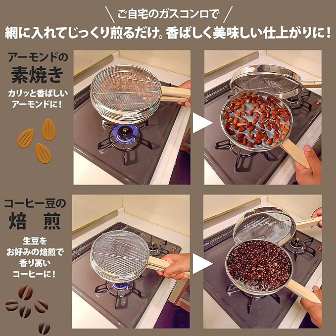 網に入れてじっくり煎ることで香ばしく美味しく煎りあがる。