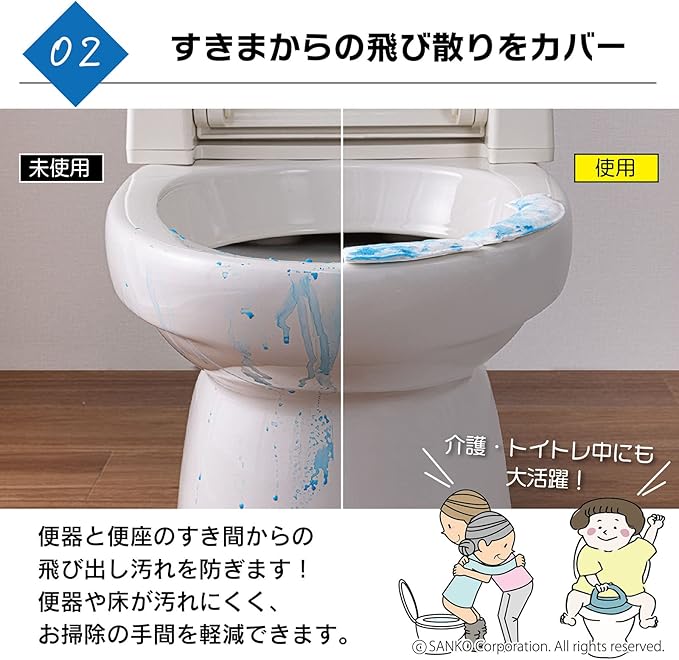 おしっこをした時の飛散や、すきまからのモレによる汚れを防ぎます。