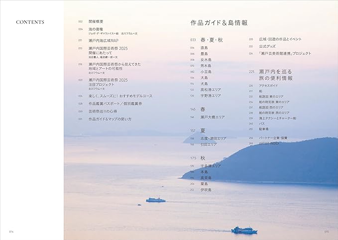本書は芸術祭の魅力をぎっしり詰め込んだ公式ガイドブック。作品の紹介と解説、詳細マップ、島のみどころや交通案内、船やバスの時刻表まで充実した1冊。