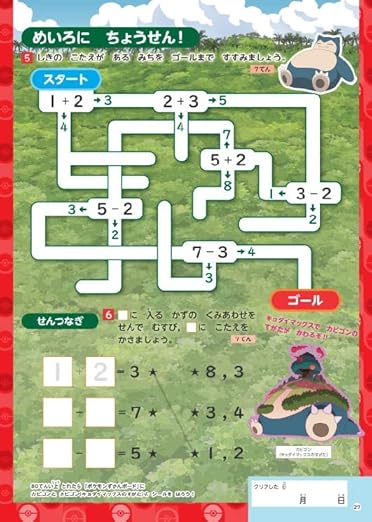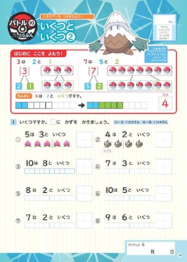 小学1年生で習うたし算とひき算を、ポケモンと一緒に、50の課題=バトルで学ぶドリルです。