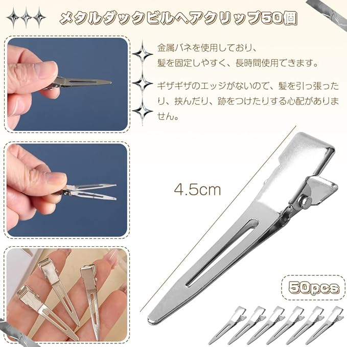 ヘアクリップ プロ用 メタルダックビルヘアクリップ 約50個セット ヘアピン ワニクリップ ステンレス 前髪 散髪 スタイリング 髪留め ステンレス クリップ 跡がつかない 美容師 業務用 長さ4.5cm(シルバー) | etshop