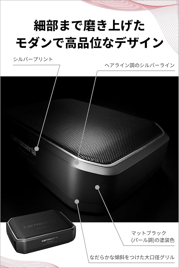 高出力時でも歪みのない高音質設計により、クリアで迫力のある重低音を奏でます。