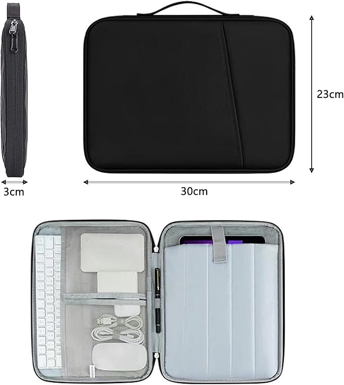 タブレットスリーブケース 9-11インチ対応 軽量コンパクト 防水防震 耐衝撃 ハンドル付き 多機能ポケット タブレット・充電器・アクセサリー収納 ビジネス 旅行 タブ レットインナーバッグ iPad Air/mini/Pro/Fire HD 10/Xiaomi/Lenovo等対応 (ブラック, 9-11インチ) | etshop