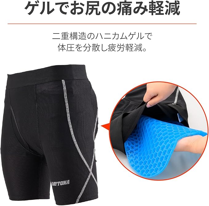 体圧を効果的に分散するハニカム構造のゲルが、ツーリングライダーの悩みであるお尻の痛みを軽減。
