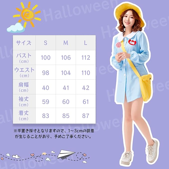 【サイズ&カラー選択】:園児服ワンピースは3つのサイズを用意しており、大きさはゆとりあるので、ほとんどの体型に対応できます。それに水色とピンク5色が選べ、親子、友達と一緒に変装することもオッケーです!