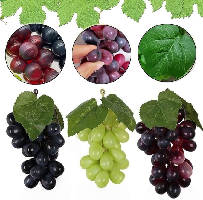 3個プラスチック製フェイクブドウの房 - 写真撮影用小道具に最適なリアルな人工フルーツ、パーティーの装飾、キッチンやダイニングテーブルのセンターピース、ホームステージングディスプレイアクセサリーに最適な本物そっくりのフェイクフルーツモデル | etshop
