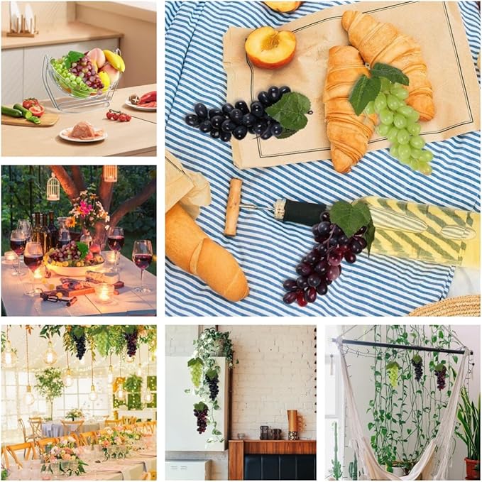 【リアルな人工フルーツで長期間使用可能】- 高品質で無毒のPVCプラスチック製のフェイクブドウは、耐久性と長期使用を考慮して設計されています。色あせしにくく、防水性があり、軽量なので、繰り返しの取り扱いにも最適です。腐ってしまう本物の果物とは異なり、これらのリアルな人工フルーツは鮮やかな色と新鮮な外観を何年も保ちます。ご自宅のインテリア、キッチンのスタイリング、パーティーの飾り付けなど、汚れを気にせずお使いいただけます。