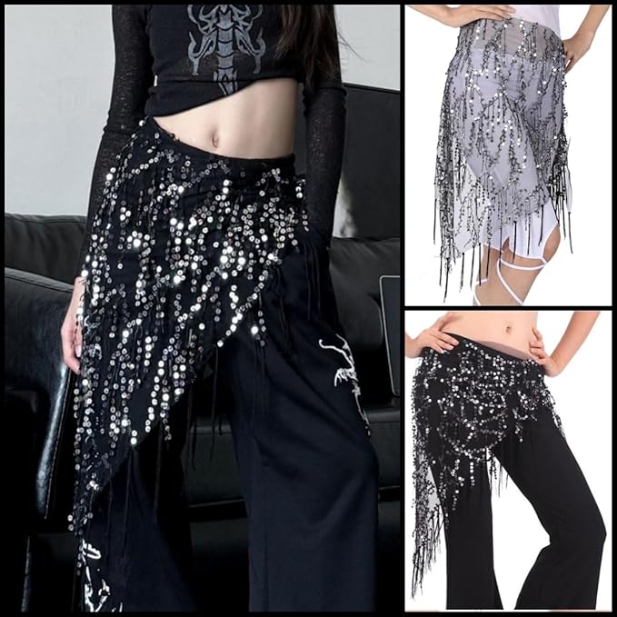 [Getrays] レディース スパンコール タッセル スカート、グリッター フリンジ ベリーダンス ウエスト ヒップ スカーフ、ハロウィン レイブ パーティー コスチューム用レースアップ タンゴ ダンス スカート | etshop