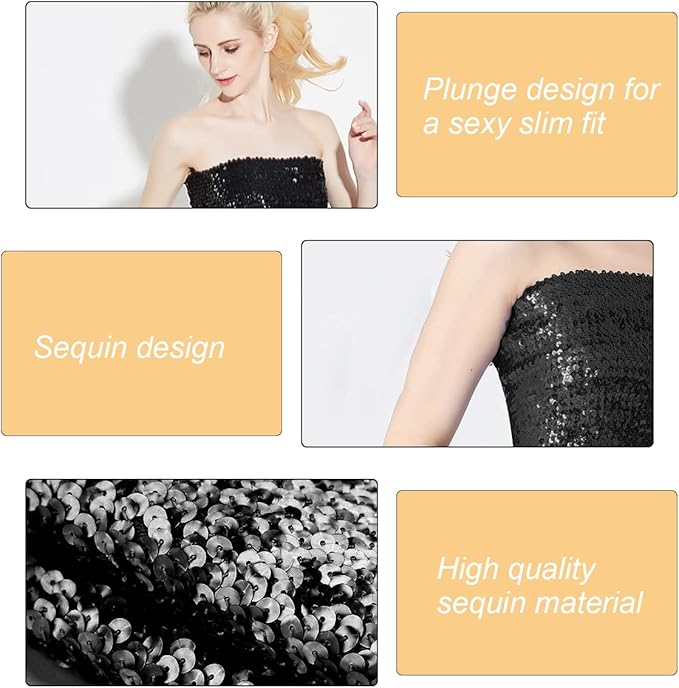【スパークリングチューブトップ】-全体にきらめくスパンコールの装飾が施されており、色が目を引きます。 キラキラしたスパンコールのチューブトップが完璧なボディカーブを強調し、よりセクシーに見せます。