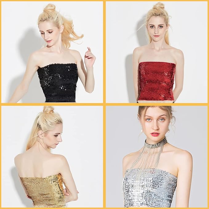 【オールマッチスタイル】- このスパンコールのチューブトップは、レギンス、ハイウエストスカート、ショートパンツ、ジーンズと完璧に組み合わせることができます。 シャツの下に着たり、スーツやジーンズジャケットと合わせたりすることもできます。 スパンコールのデザインが施された伸縮性のあるバンドゥトップは、あなたを魅力的でゴージャスにし、さらに褒められます。