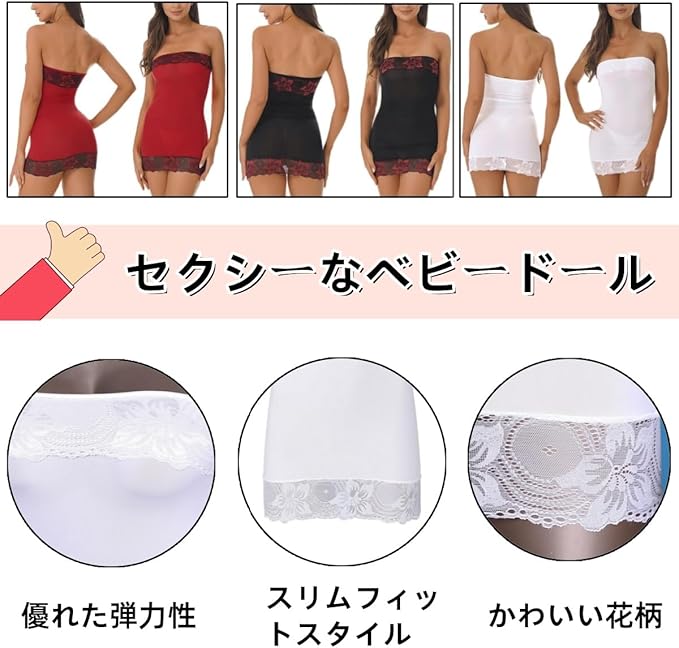[Getrays] 女性のセクシーなチューブのトップドレス、レース光沢のあるボディストッキングシアーストラップレスボディコンミニドレス、セクシーなランジェリーナイトガウンシーサイドパーティースリミングボディコン | etshop