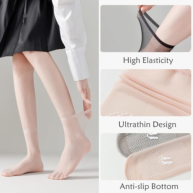 【クラシックカラー】 ✅ 同色のシースルーソックス5足セットです。ヒール、フラットシューズ、スニーカー、ドレス、ショートパンツなど、どんなスタイルにも合わせやすい万能ソックスです。ファッショナブルでエレガントな装いを演出できます。