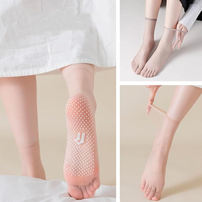 [Getrays] レディース シースルーソックス 5足組、薄手 透け感 ナイロンソックス 通気性 伸縮性 足底 滑り止め ショート 靴下 フリーサイズ 女の子 婦人 通勤用 くつした クリスタル ポップ 靴下 | etshop