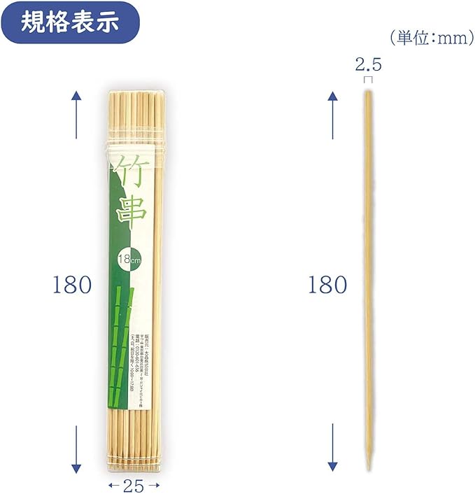 串焼きの他にも、調理用など幅広い用途に使える竹串です。