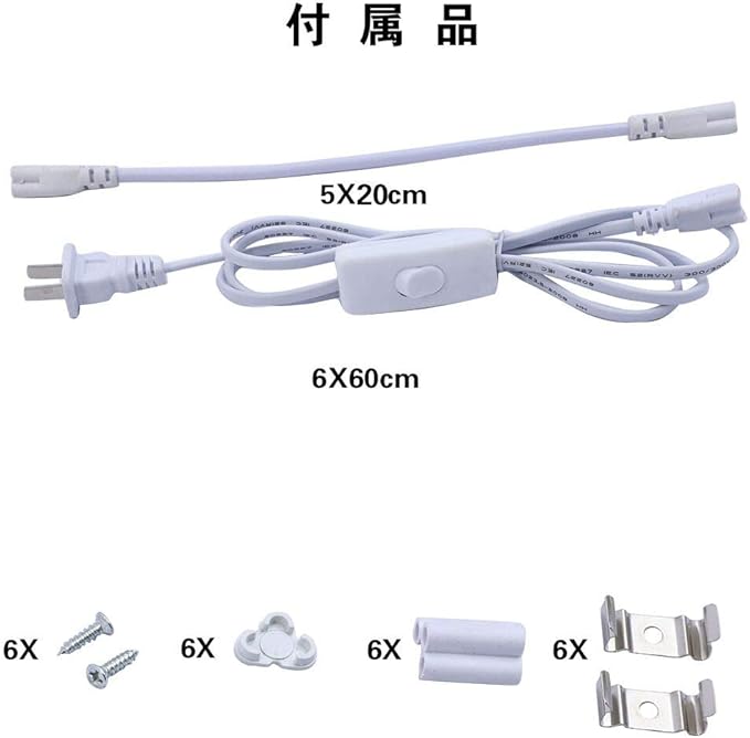 器具一体型T5 LED蛍光灯 消費電力:9W(20W相当) 定格電圧:AC85V~265V全光束:900LM、色温度:電球色(2700K-3000K)長さ:約600mm 素材:アルミ基板+PC透光乳白色カバー。最大6本まで直列連結できます。