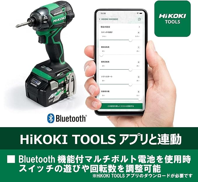 別売りBluetooth蓄電池(BSL36A18B、BSL36B18B)とアプリを使い自分好みのモードを作成できる!