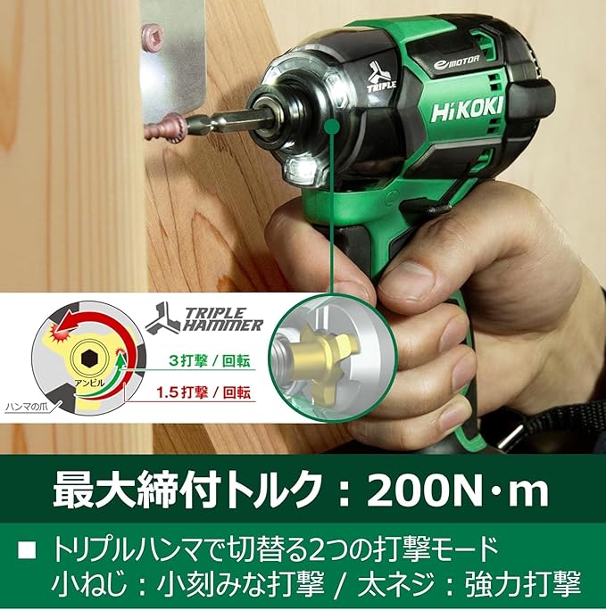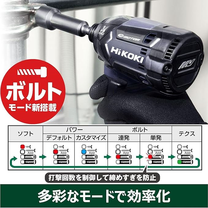 用途で選べる多彩なモード!デリケ最大トルク 200N・m。最適なトルクでビットやビスの破断を抑制!ートな作業から重負荷作業まで対応!低速でも止まらない!微調整がしっかりでき、機体との一体感が向上!