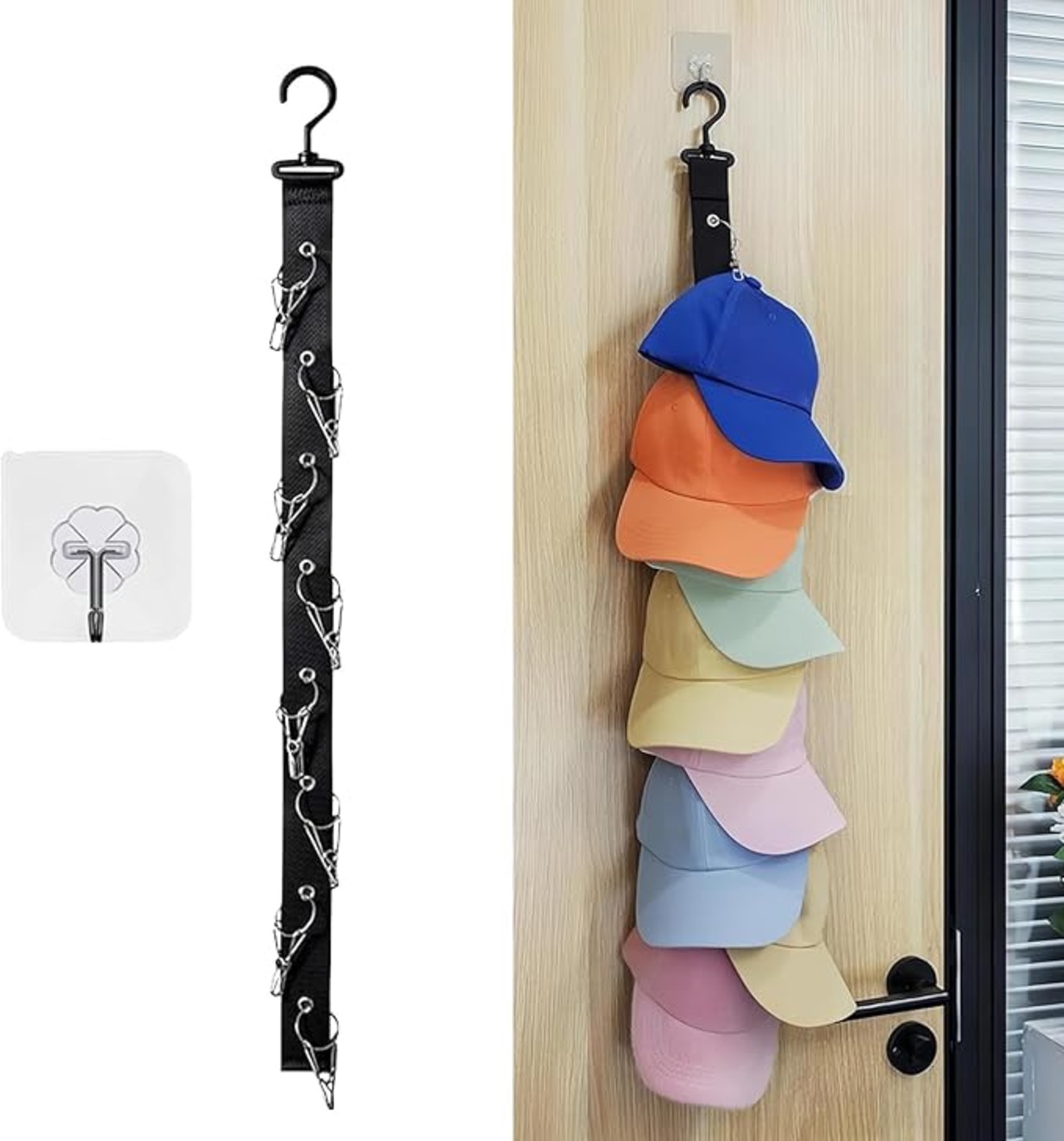 【360 回転フック】上部に360 回転可能のフックが設置され、収納場所に合わせて調整でき、帽子の選択と取り外しが容易になります。この帽子掛けは耐久性ナイロンで細かく縫製され、破れにくく長期使用に耐えられます。