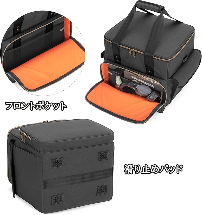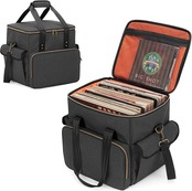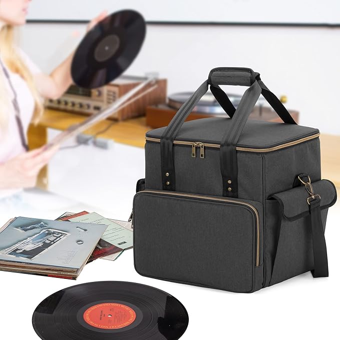 【大容量のレコードバッグ】サイズ:33*26.7*34.3cm。レコードケースは7/ 10/12インチの約60枚のレコードを収納できます。フロントポケットと2つのサイドポーチがあり、7インチのレコードを数枚収納できます。あるいはアクセサリーとクリーニング用品を収納できます。
