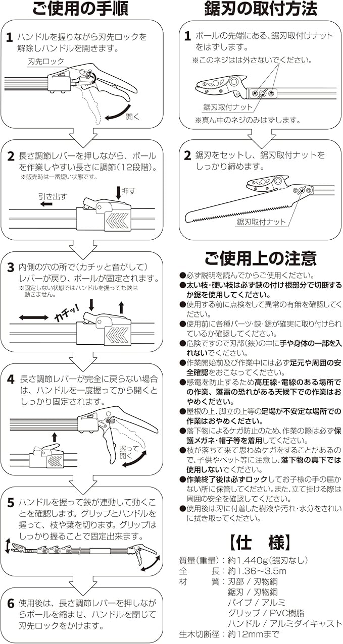◎収納に便利な伸縮式高枝切鋏 3.5m 4段式伸縮タイプ