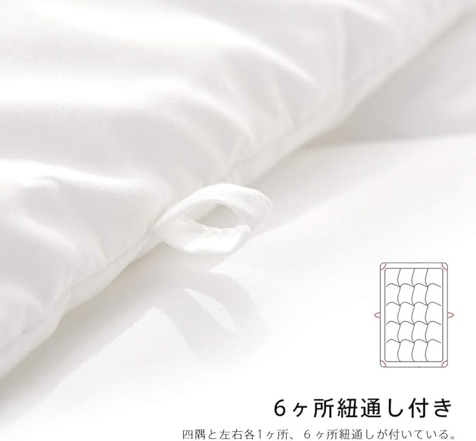 【商品情報】生地:ポリエステル(ピーチスキン加工) 中わた:ポリエステル(帝人「マイティトップII」を50%使用) 総重量:1.3kg 仕様:キルティング加工/6ヶ所紐通し付き 生産国:中国