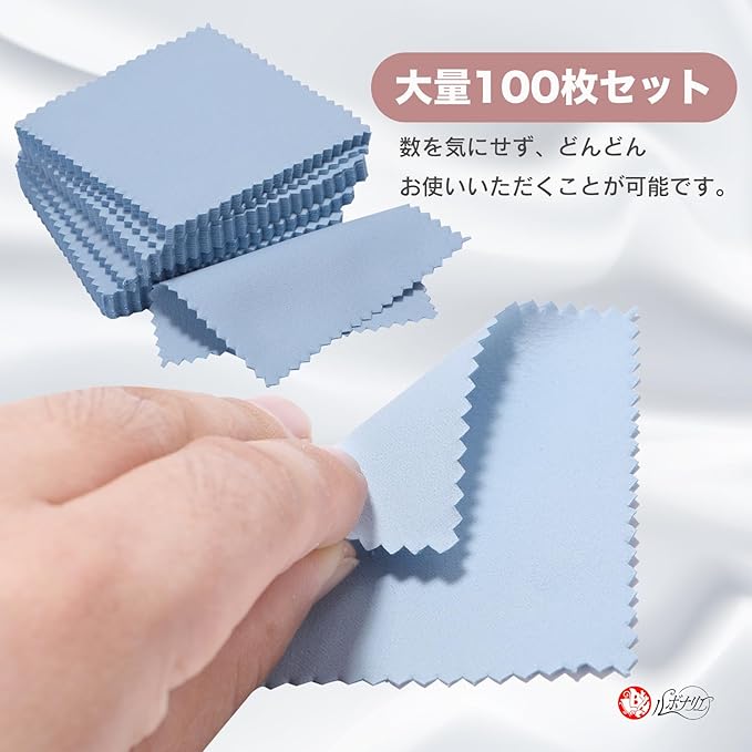 銀や貴金属、時計、真鍮、銅などの表面を磨き上げ、本来の輝きを取り戻すシルバー磨きクロス100枚セットです。ブルー、グレー、ピンクの3色をご用意いたしましたので、お好みに合わせてお選びください。