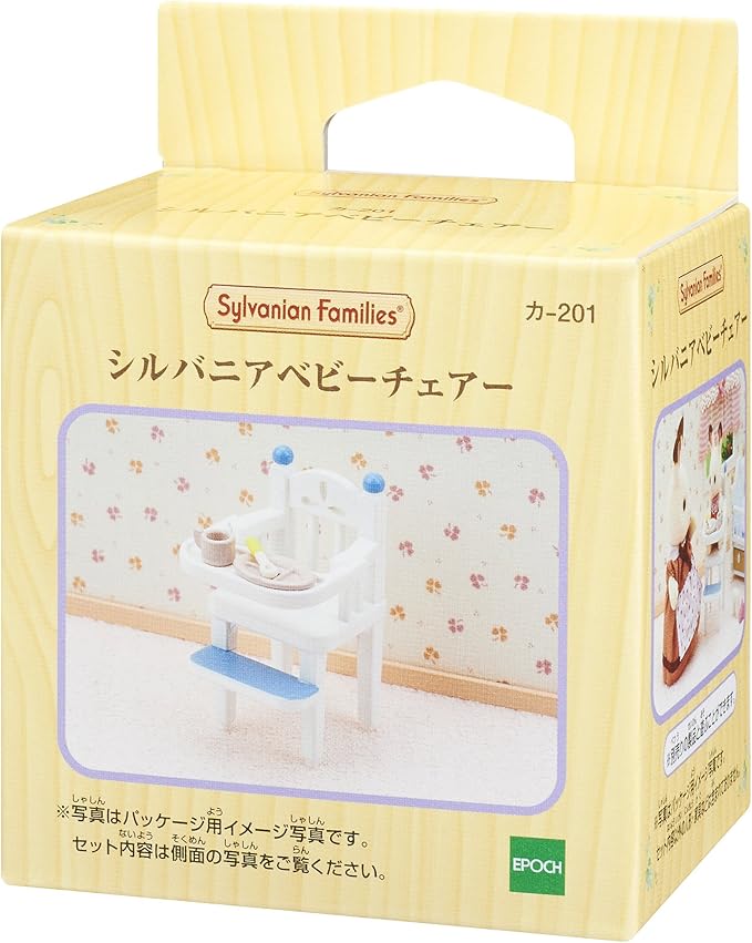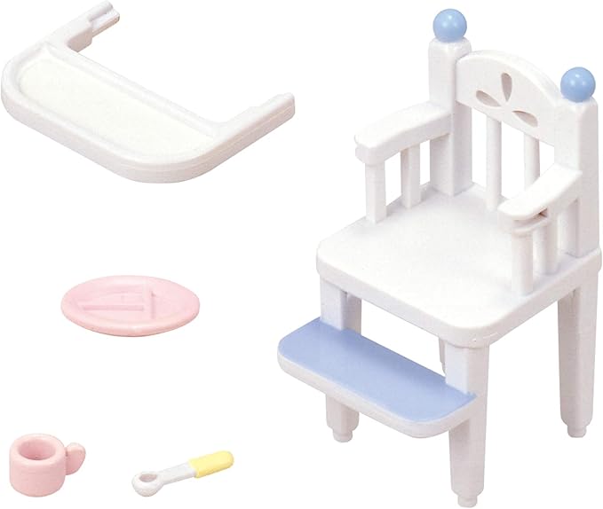 白と水色のカラーリングのベビーチェア。カップ、お皿、スプーンが付属。 かわいい小物がたくさん揃った「ベビー&チャイルドルーム」シリーズ。