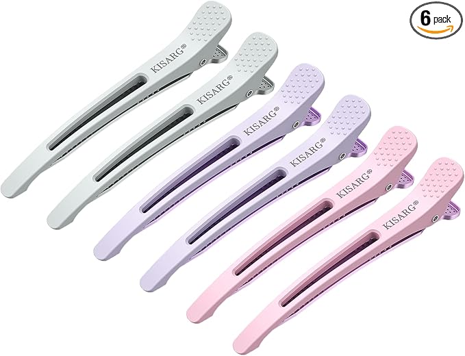 【快適でしっかりとまる】強力バネとシリコンバンドの組み合わせで、濡れた髪でも乾いた髪でも、しっかりホールドできます。 挟む時、先端が頭に刺さらなく、頭皮を傷つけません。外す時、シリコンの滑り止め付きで髪の引っかかりや絡まりを防ぎます。これらのヘアクリップは、髪を分けてしっかり留めるのに最適です。