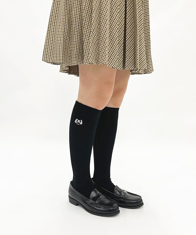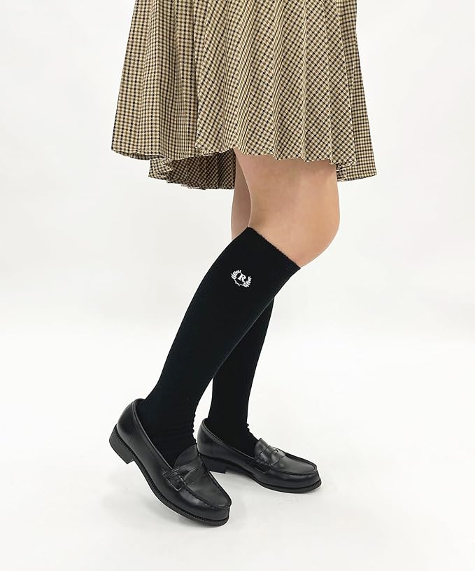 ワンポイント刺繍が入った38cm丈のしっかり長さがあるスクールハイソックスです。