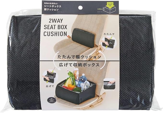 荷物の無いときは腰クッション、広げれば収納ボックス!邪魔にならず、役にしか立たないBOX腰クッション。