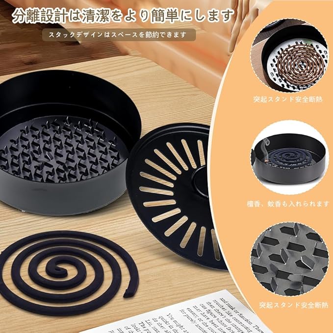 【分離デザイン】:蚊取り線香 ケース分体デザインで、掃除が便利で、層を重ねて、空間を占有せず、メンテナンスが楽です。 小丸子取っ手は断熱性に良く、やけど防止で、開閉に便利です。