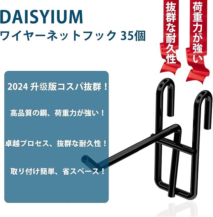 【パッケージ内容】35個網フック、ステンレス製、フックワイヤー径5mm、フック枠径4mm、長さ5cm、黒、耐荷重量10kg。特別なDIYの技術がなくても、アイディア次第でさまざまな使い方ができるメッシュパネルフック。お手軽に始める事ができますので、皆さんもぜひお試しください!